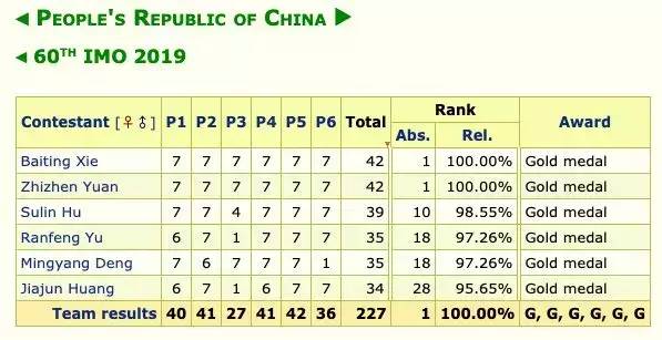 中国诞生了2名满分选手,且6名队员均摘得金牌,这也是8年来中国队员再次全部摘金。