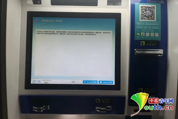 西藏自治区人民医院二楼内科区多功能自助查询机的信息查询窗口,还保存着周南的信息。中国青年网记者 张瑞玲 摄