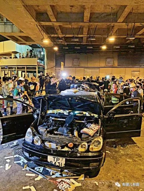4时许,黎智英刚一离开,现场游行形势急转直下,大批黑衣暴徒开始拆毁交通护栏,从铁栏上拆下铁枝向袭击警员……暴乱开始。