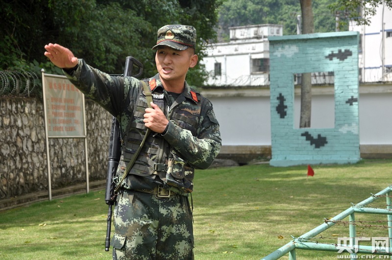 图为桂志坤指导战士训练(央广网记者王子衿摄)