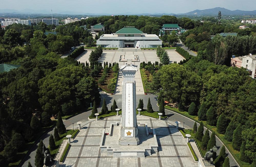 这是2019年8月1日无人机拍摄的湖北省黄冈市红安县黄麻起义和鄂豫皖苏区纪念园全貌。新华社记者 程敏 摄