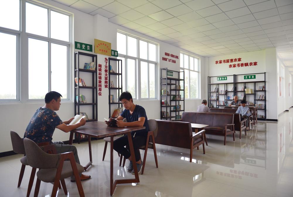 江苏省宿迁市沭阳县钱集镇新桥村村民在农家书屋阅读(2019年8月25日摄)。 新华社记者 任鹏飞 摄