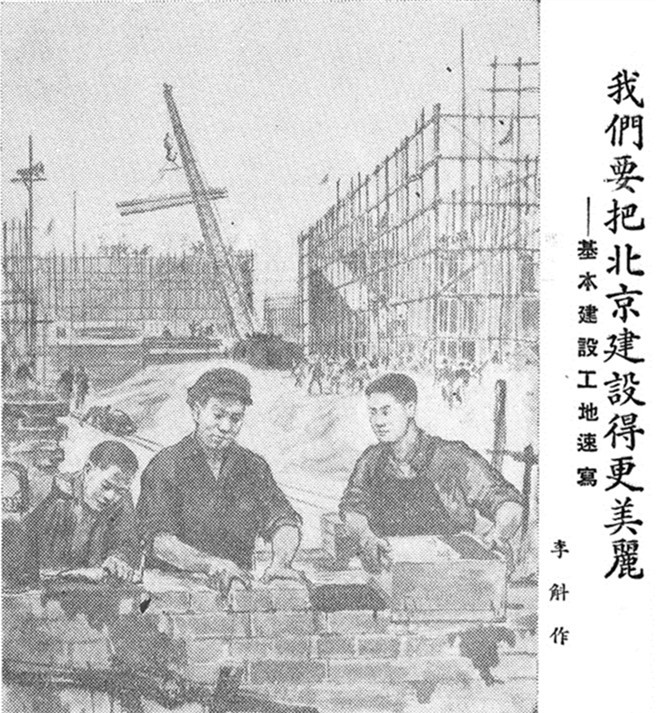 1950年3月,中央人民政府开始大力进行统一全国财政收支和稳定金融物价的工作。此后,北京的城市建设逐渐步入正轨,各行各业开展了轰轰烈烈的生产运动。盖房子、修桥、筑路、开矿井、办工厂、安装机器、架电线……那些年,北京城大力开展基本建设,到处都是一派热火朝天的建设景象。