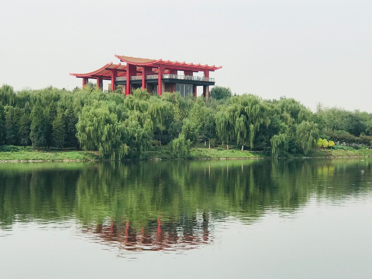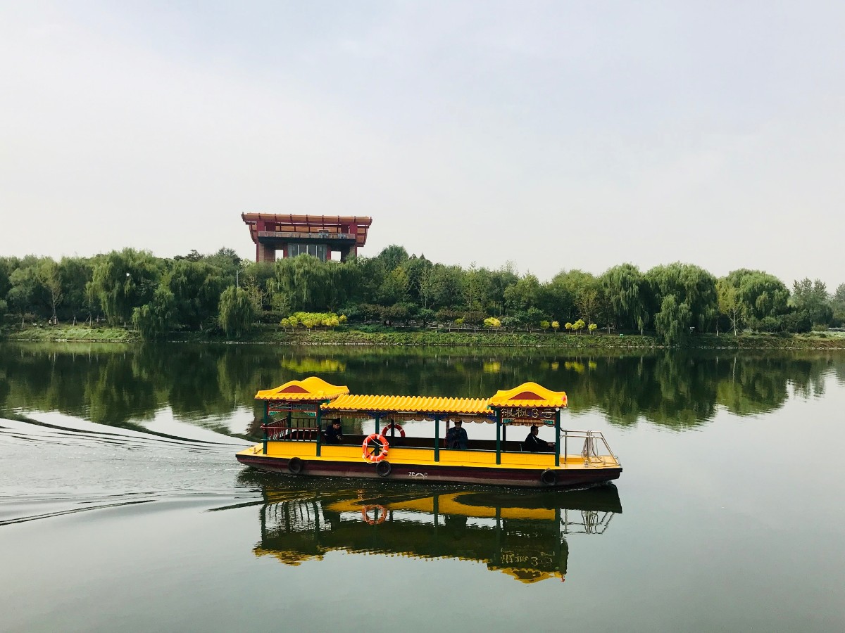 站在甲板上四处眺望,最显眼的是月岛观景平台。这座平台位于大运河森林公园的至高点,主体为朱漆色钢结构与原木装饰相结合,上方屋脊是根据中国传统屋顶设计建造而成。端庄大气的观景台与运河水俯仰相应。2017年2月,习近平总书记到通州视察时,曾在这座观景台上驻足。