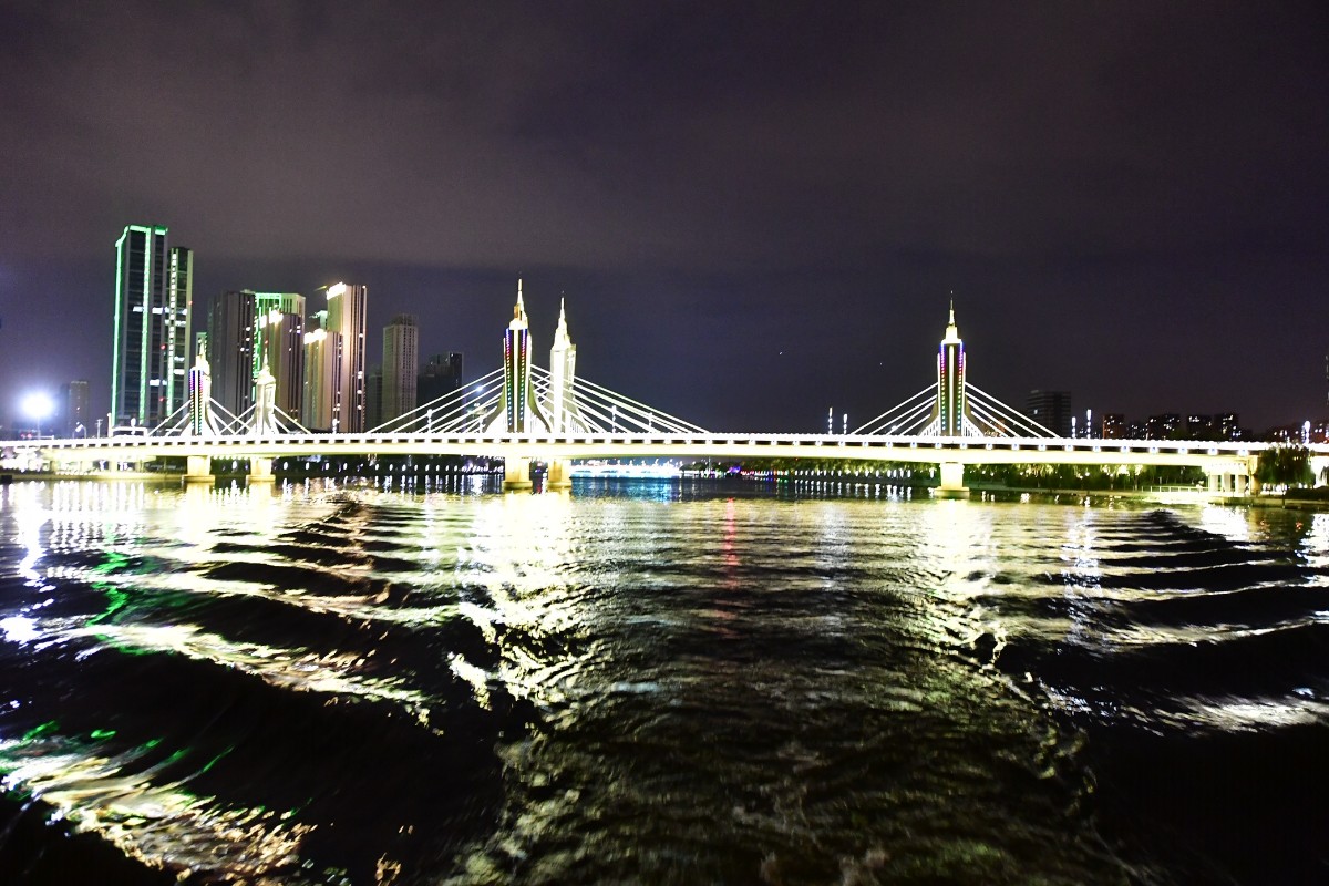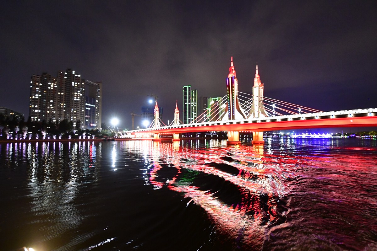 据了解,北运河城市段通航,最大亮点还是在晚间。今年通州区对运河沿线的景观照明和绿化景观进行了全面提升。夜景照明方面,沿岸树木采用环形灯、投光灯和树木星星灯等进行亮化,桥体安装洗墙灯对桥梁侧面进行亮化,桥墩安装投光灯进行亮化。北关拦河坝桥、千荷泻露桥、东关大桥、玉带河大桥、潞阳桥、北运河大桥、运通桥等桥梁,通过夜景照明改造,各有各的色调和风格特点,如北关拦河坝桥结合周围建筑景观,表现桥体古朴风格;千荷泻露桥通过灯光勾勒出桥体优美的线条特征,形成典雅倒影。