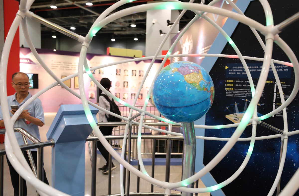 展览中,“鹊桥”互动展示模型吸引了不少人驻足观看。展品由自转的地球模型、自转和公转的月球模型、鹊桥模型和互动触摸屏幕组成。轻轻转动启动按钮,观众就可以现场观看到地球和月球的模型模拟自转、公转演示,模型射出的水雾和激光光线,形象地解答了“在地球上为何看不到月球背面?”