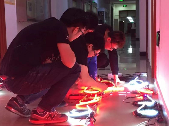 “说容易也容易,用的技术就是单片机啊、数电模电啊这种很基本的理工科知识。说难也难,要把这144个光源调试好,很难。”团队技术负责人、自动化学院的潘淼鑫同学说。除了调试系统,更大的困难是如何平衡学业和灯光秀的系统制作。据潘同学说,这个灯光秀很久以前就开始策划了,但每天只能推进一点儿,“我们一共6个人,白天要做实验做毕业设计,都是晚上回宿舍才做灯光秀的事。”潘淼鑫说。
