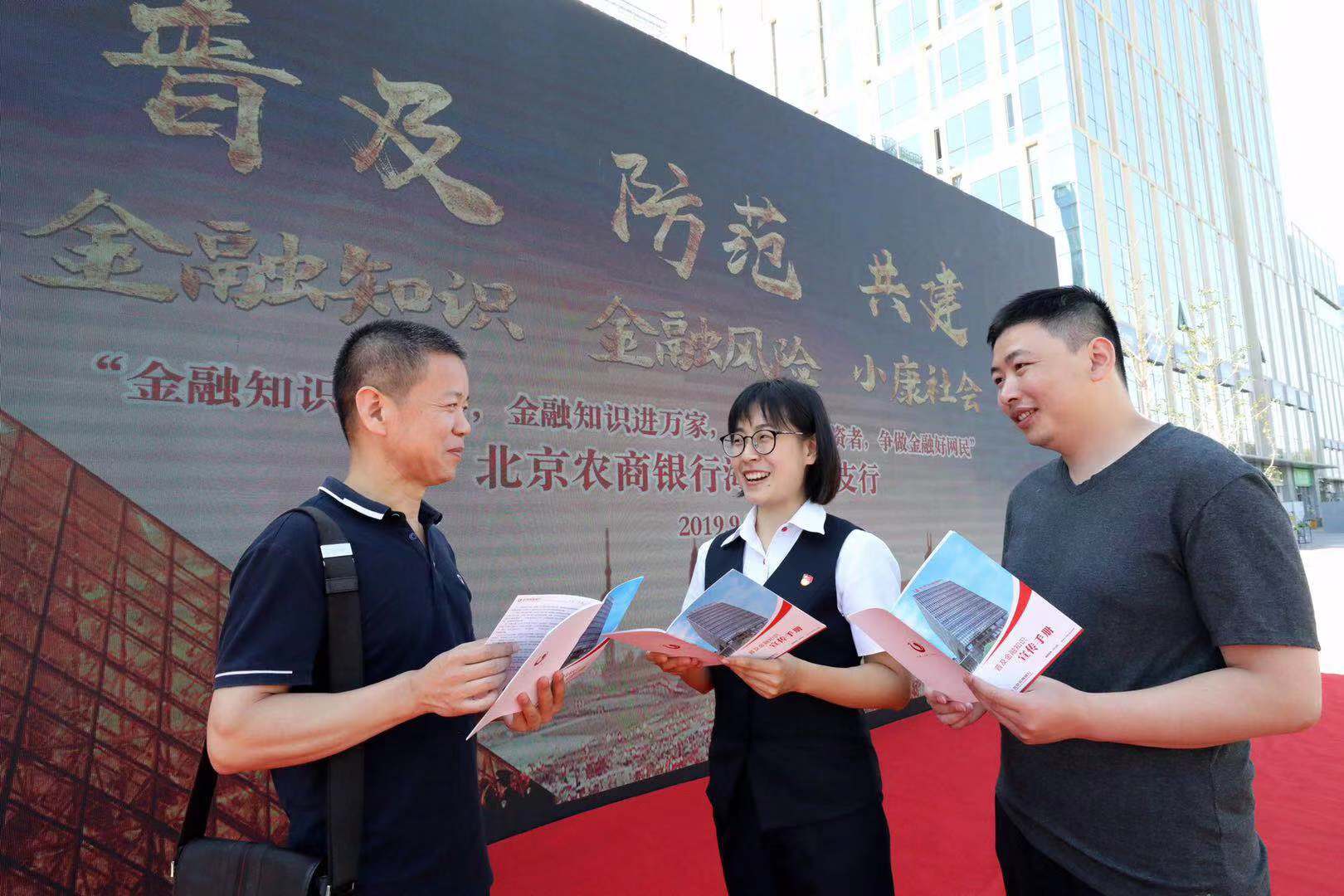 为贯彻落实党的十九大精神和习近平总书记关于金融工作的重要讲话精神,提高社会公众金融素养和防范金融风险意识,维护金融安全与稳定,北京农商银行积极响应监管部门要求,开展2019年“金融知识普及月 金融知识进万家 争做理性投资者 争做金融好网民”金融知识普及宣传活动。