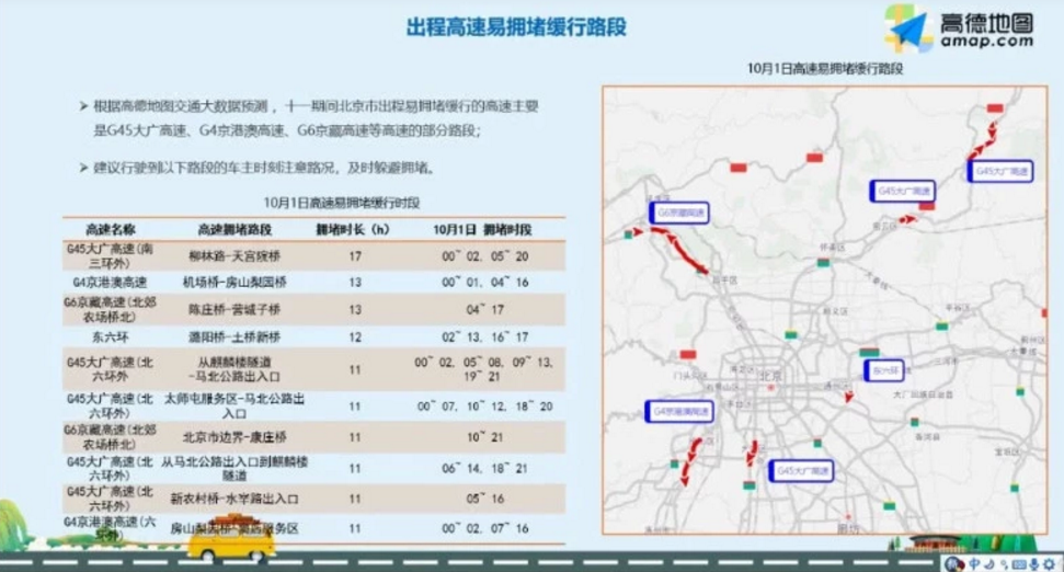 根据历史数据分析,交管部门梳理汇总出“十一”假期期间交通易拥堵点段: