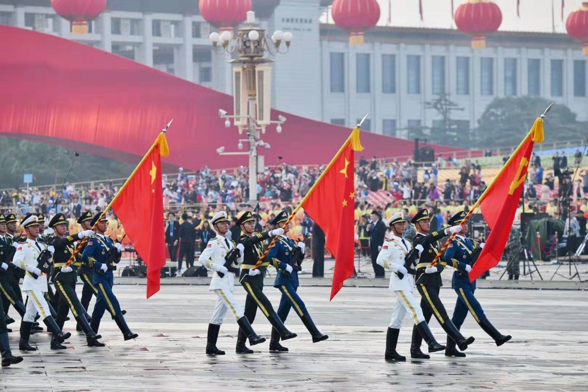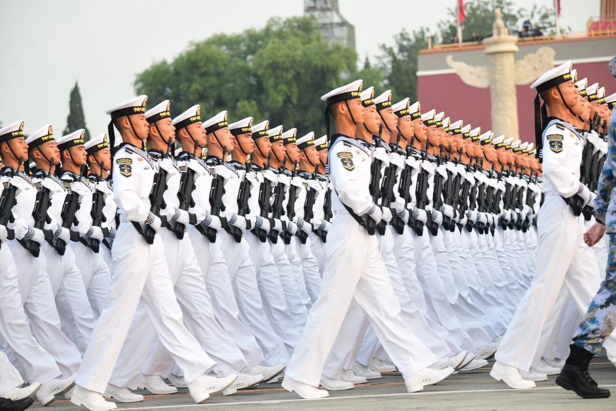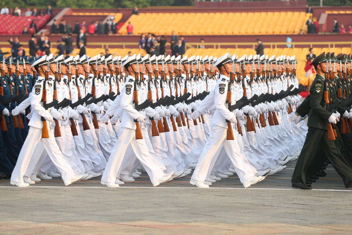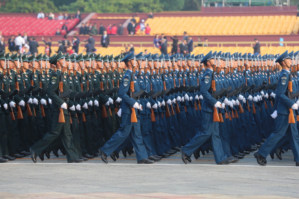 由人民解放军、武警部队和民兵预备役部队约15000名官兵、580台(套)装备组成的15个徒步方队、32个装备方队,沿东长安街绵延向东约2公里;陆、海、空航空兵160余架战机,组成12个空中梯队,在北京周边多个机场整装待发。