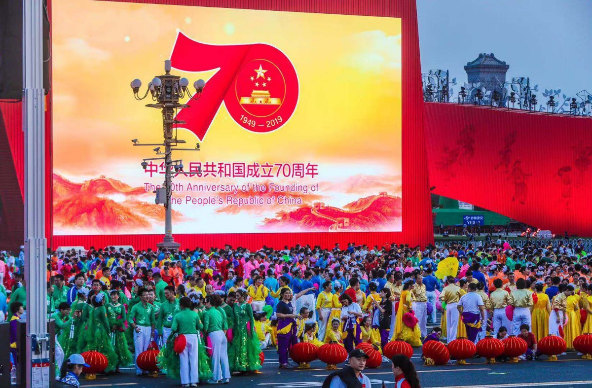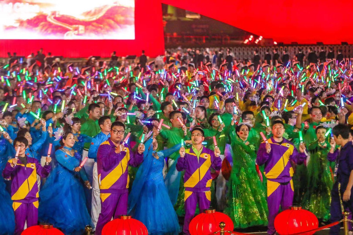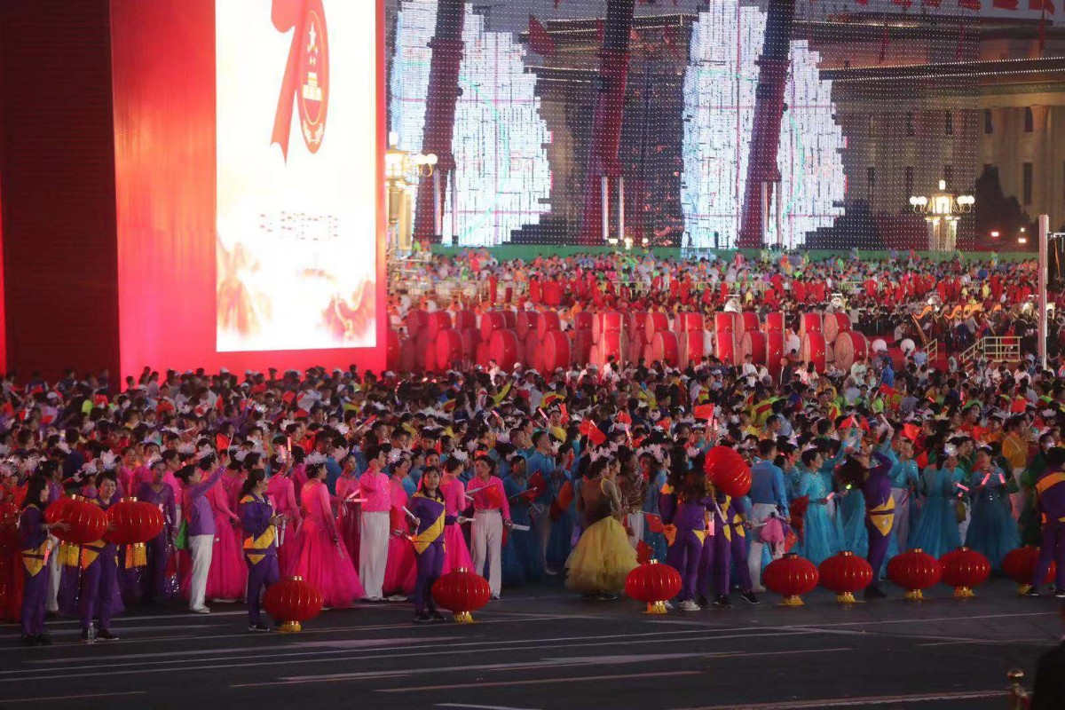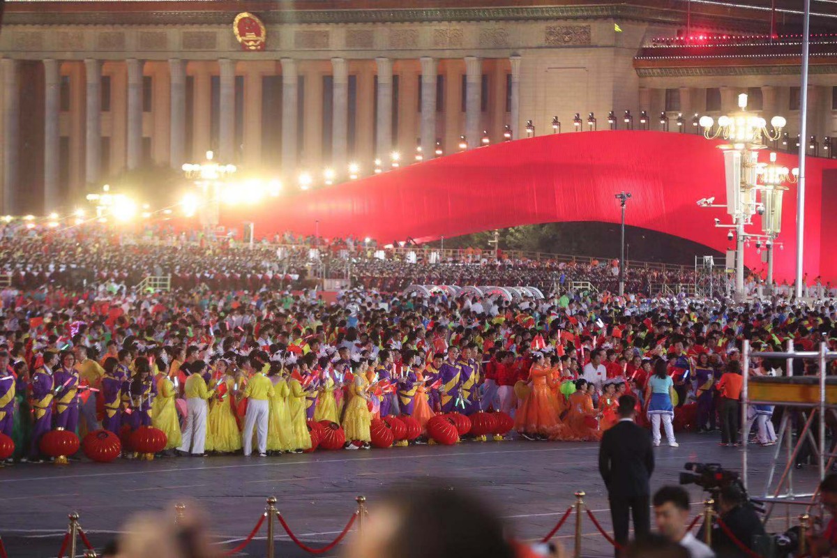 晚6时,广场上参与联欢活动的演员整装待发,进行最后的准备。