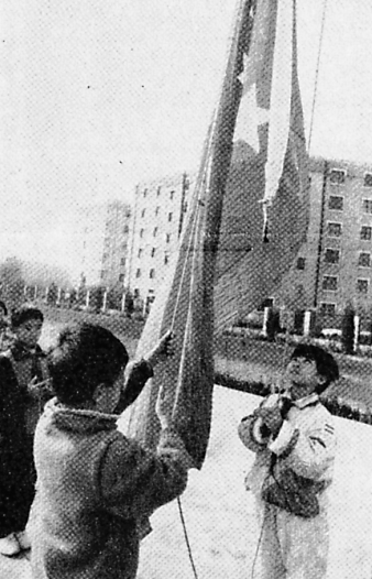 1993年,大兴黄村第九小学的学生正在举行升国旗仪式,通过这种方式陶冶情操,增强爱国意识。程玉扬/摄
