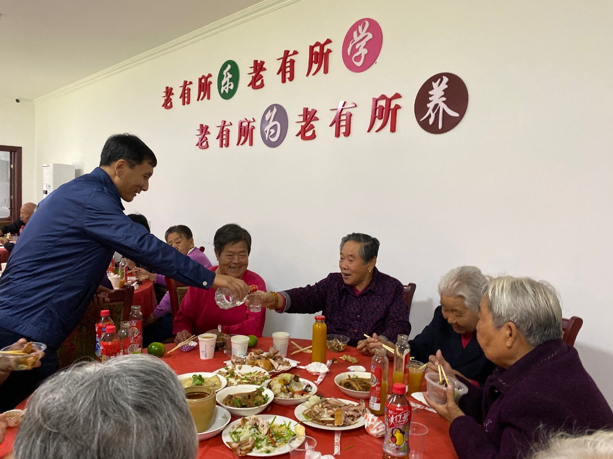 今年已经是连续第7年举办“千岁宴”了。村里邀请60岁以上老人欢聚一堂,共度佳节。其中“千岁”取愿每位老人长命百岁的寓意,每桌六凉、六荤、六素,一共十八道菜,其中“合家团圆”、“富贵满堂”等寓意深远的主题菜品深受老年人喜爱,菜肴根据老人口味进行精心调配,口感咸淡适中、软糯易烂,适合老年人品尝,餐桌中间鲜艳的大寿桃,祝愿老人们健康、长寿。