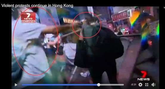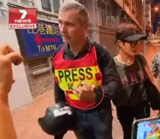 之后,这位澳大利亚主流媒体“第七频道”(Channel 7)的记者开始讲述他与被“乱港暴徒”殴打的香港艺人马蹄露相遇的过程。