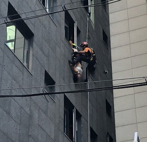 据韩国《东亚日报》11日报道,当地时间9月30日早晨7时28分许,49岁的朴京浩(音)在经过首尔江南区的一家酒店时,突然听到一阵急促的声音。他循声而去后发现惊险一幕:一名女性倒挂在酒店5楼的窗外,脚踝则被屋内的人抓住。