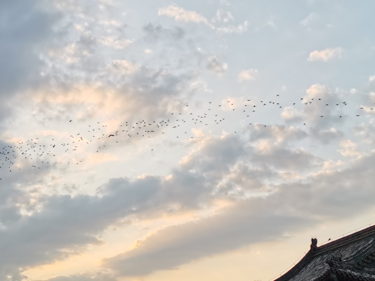 这两天,每到黄昏时分,延庆区康庄镇上空就会出现成千上万只黑色的大鸟,它们结队飞翔,场面十分壮观。