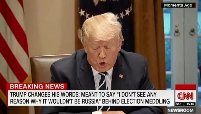 一个简单的语法题,按照特朗普的说法,他把双重否定搞错成了否定。当时,美国人并不买账特朗普的解释,因为他16日“相信普京,不相信美国情报机构”的言论被认为是“俄罗斯总统普京的外交胜利!”“美国总统特朗普竟然站在俄罗斯那边!”