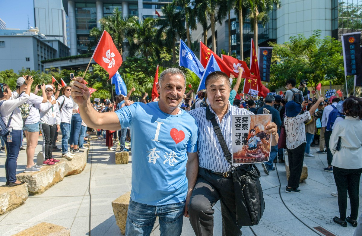 来自瑞士的Angelo身穿印有“我爱香港”字样的文化衫,说着一口流利中文。他告诉记者,自己来中国做生意已有25年,3年前到香港定居,眼看这座美丽的城市遭暴力破坏,感到非常心疼。“香港很多小孩子被媒体误导了。我觉得香港警察是全世界最专业可靠的,他们值得人们尊敬。”