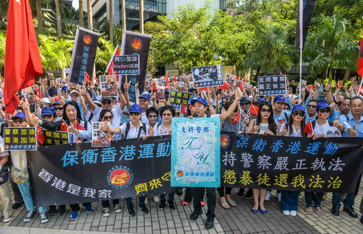 作为活动的主要组织者,保卫香港运动协会主席傅振中表示,“听到千余名市民高喊口号的那一瞬间非常感动,也坚定了我做这件事的信心。越来越多沉默的市民出来支持警察止暴制乱,香港一定会恢复正常秩序。”