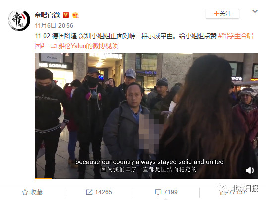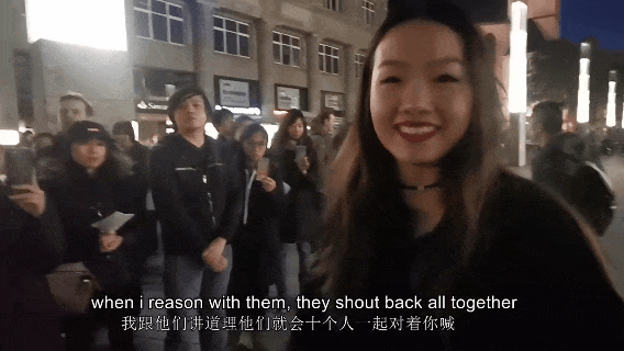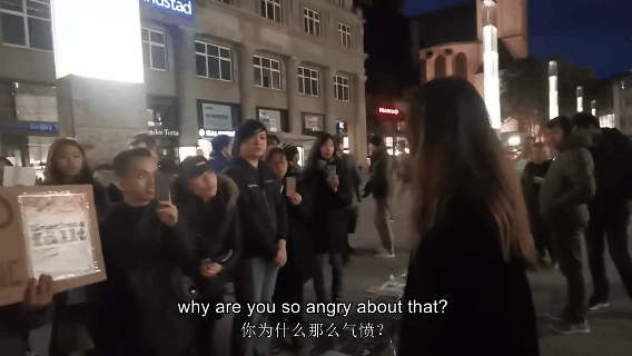视频显示,在德国街头,一位来自内地的姑娘正气对峙香港示威者,思维清晰、语言流畅、证据充足。面对这样的质问,示威者们则以喊口号、唱歌无礼应对,或顾左右而言他。
