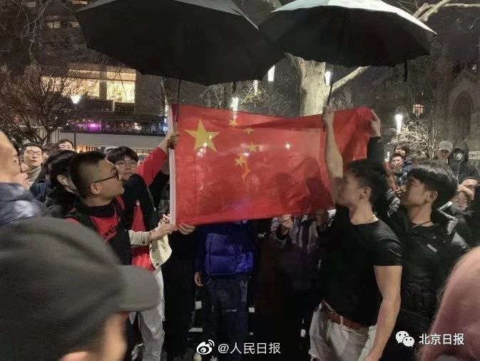 例如当地时间8月16日晚,在澳大利亚墨尔本,面对“港独”聚会,中国留学生在雨中齐唱国歌,并撑伞守护国旗,这一幕令无数人动容。