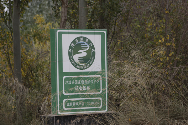 离排污池不远的地方看到沙坡头国家级自然保护区标示牌 本文图片均为受访者提供