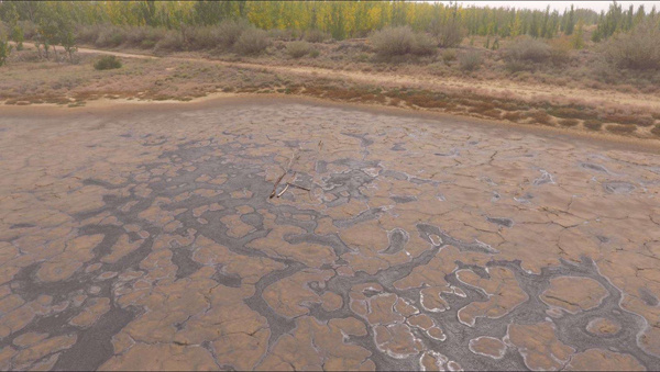宁夏中卫市美利林区的一处排污池航拍图