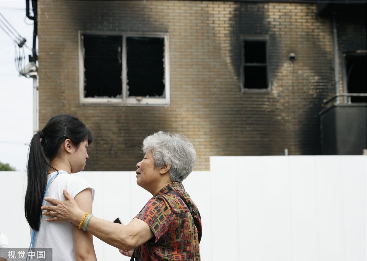 7月25日,日本京都,京都动画工作室火灾事故现场。