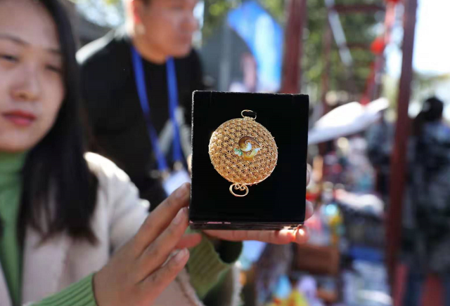 记者在现场看到,越来越多的旅游商品将传统工艺和文创相结合,展现出了自己独特的魅力。万花筒是典型的中国传统文化,将万花筒打造成景泰蓝的外形,让成年人也愿意把玩;中国国家京剧院的文创产品则将京剧脸谱与面膜结合,吸引了很多游客的关注,生旦净丑四个京剧脸谱敷在脸上,让普通人也能圆一回京剧梦;金丝镶嵌工艺的胸花、耳环等饰品也同样让游客爱不释手,这家企业将清宫造办处流传下来的花丝镶嵌工艺应用于饰品,并将黄金材质改变为银镀金材质,降低造价,让很多普通人也能感受传统工艺。