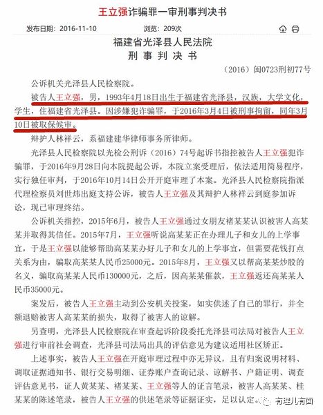 细看静安分局的通报,事实既好笑又耐人寻味。这个王立强虽然才26岁,但在诈骗这个行当里却是个“老司机”了!2016年因诈骗罪被福建省光泽县法院判处有期徒刑一年零三个月(缓刑), 2019年2月,恶习再犯,干了一票大的,骗了460余万!