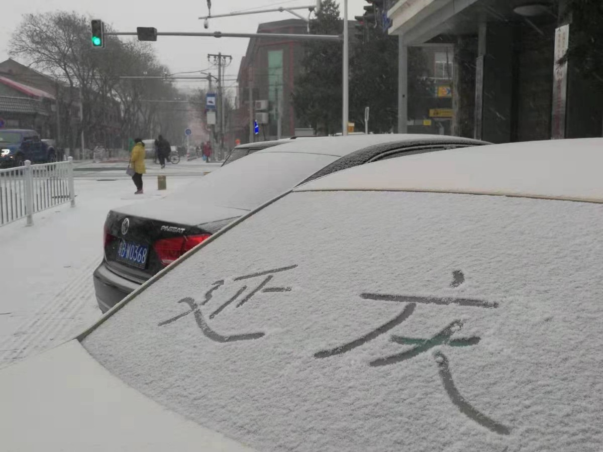 15时许,延庆的地面已经被雪花覆盖上薄薄一层。