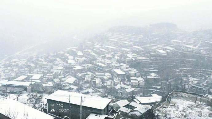 门头沟区斋堂镇柏峪村的地面已经被白雪覆盖。