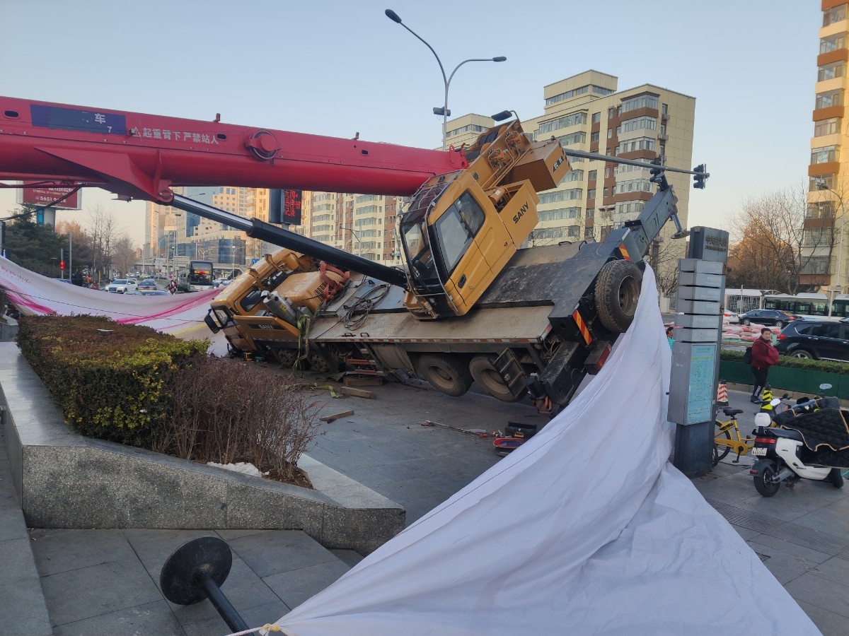 商场负责维持现场秩序工作人员告诉记者,事发时间在今天凌晨,“当时海淀黄庄地铁口电梯正在进行施工改造,吊车在吊起重物时发生倾倒,未造成人员伤亡。”由于吊车的体积比较大,吊车的搬离仍需一定的时间。
