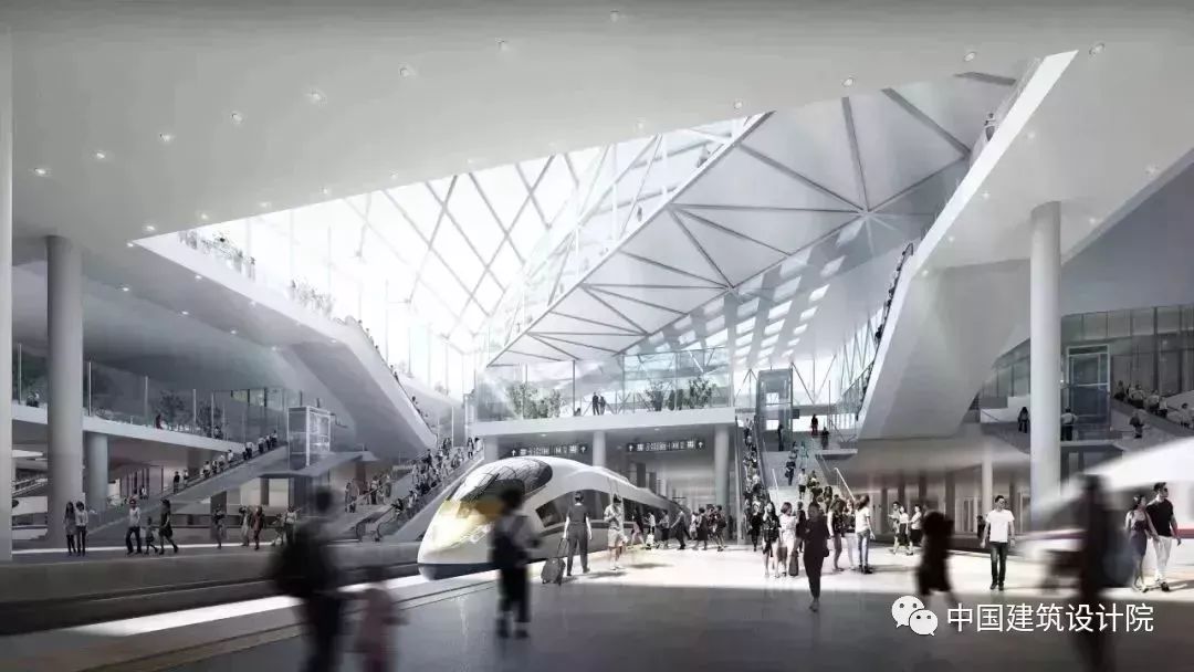 经国际方案征集、优选及整合,综合枢纽的基本特点是铁路车站、地铁、公交枢纽及配套的交通功能设施全部位于地下。