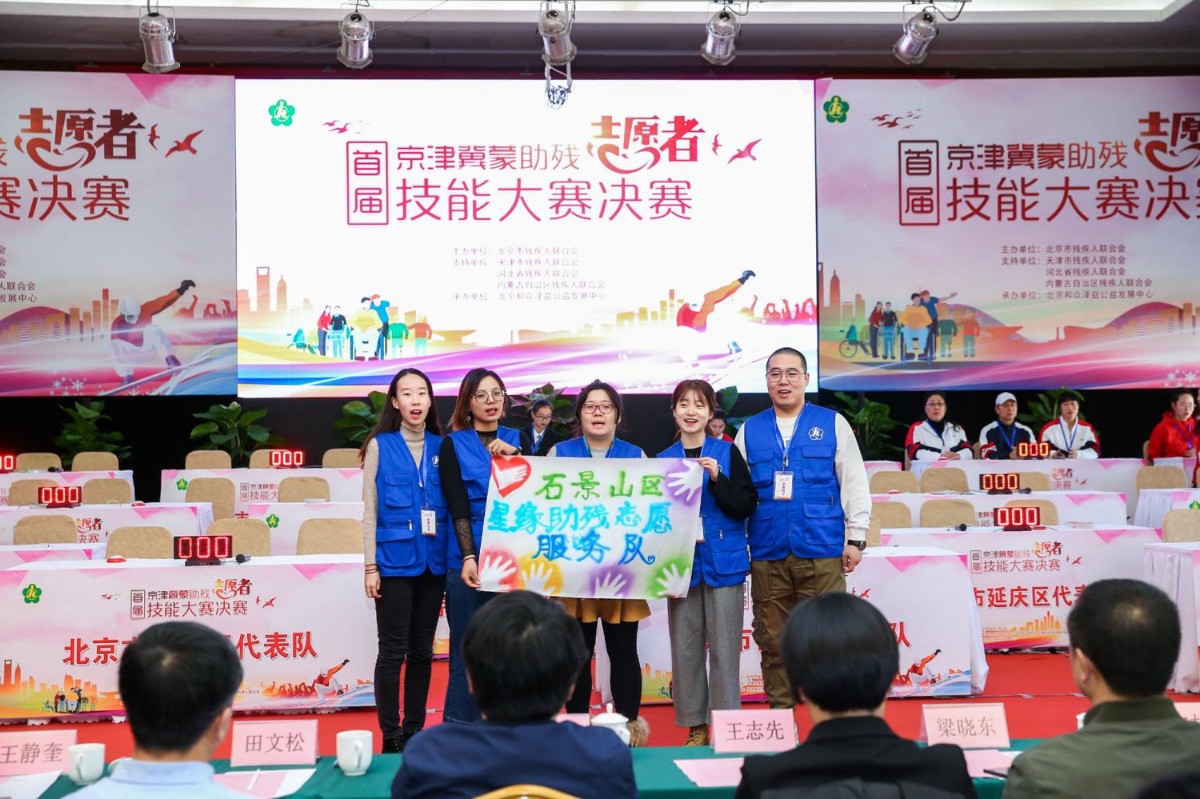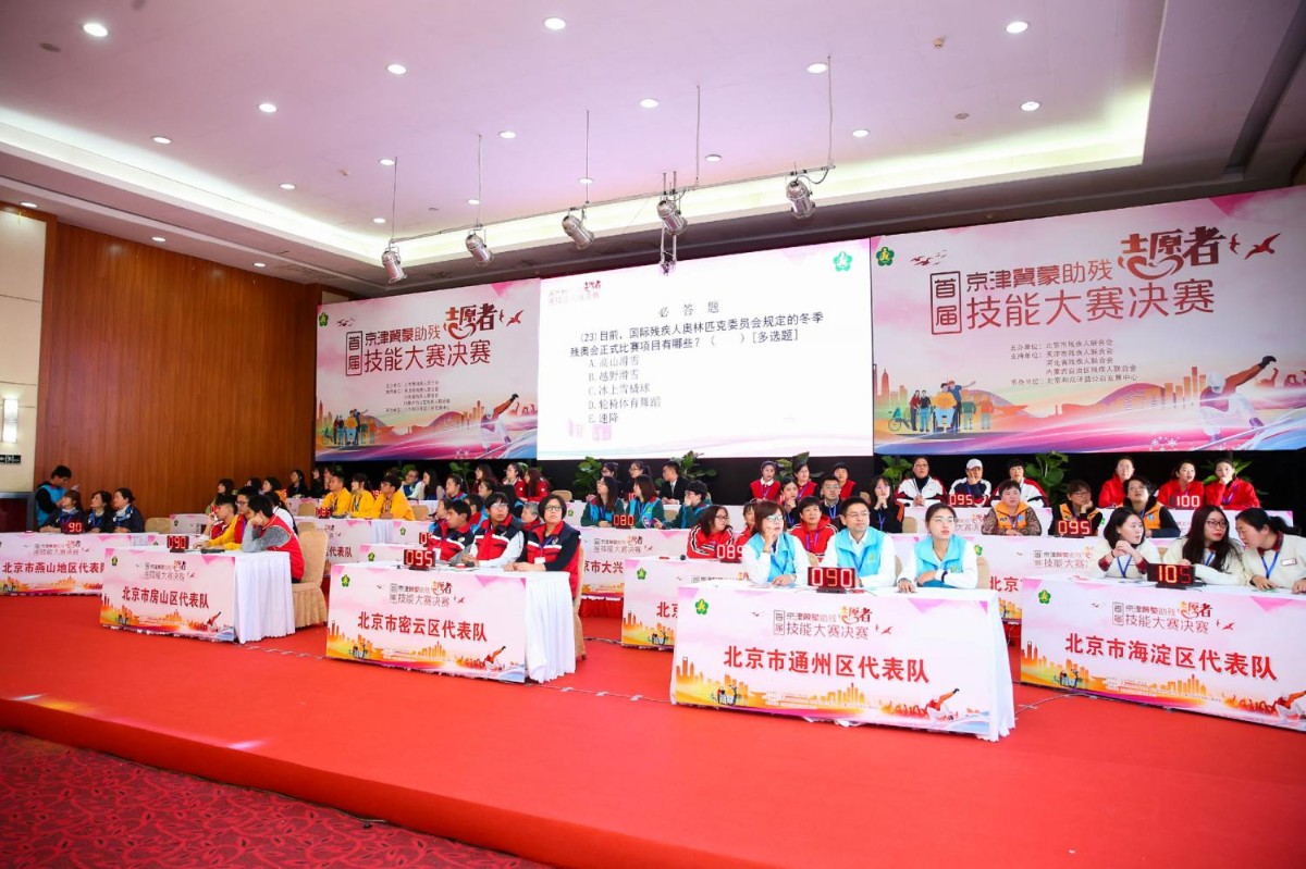 2019年12月4日上午,由北京市残疾人联合会主办,天津市残疾人联合会、河北省残疾人联合会、内蒙古自治区残疾人联合会支持,北京和众泽益志愿服务中心承办的“首届京津冀蒙助残志愿者技能大赛”决赛在京举行。