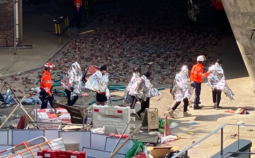 暴力分子自首离开香港理工大学。