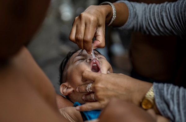 10月14日,菲律宾马尼拉,当地为儿童接种小儿麻痹症疫苗。
