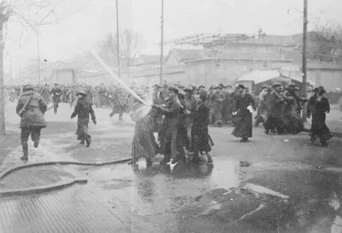“打倒日本帝国主义!”“停止内战,一致对外!”“武装保卫华北!”的口号声此起彼伏,爱国学生们浩浩荡荡地涌向天安门广场。宋黎回忆,队伍走到王府井南口,救火车横列在街口做防御工事,两旁人行道上站满了手持水龙、大刀、木棍的军警。当游行队伍向前挺进时,“肆行无忌的军警,突然用水龙头对着人群扫射起来,水柱像一条条毒蛇窜到同学们脸上、身上”。同学们与军警展开搏斗,有数十人被当场逮捕。最终,在国民政府的镇压下,游行队伍被迫冲散。