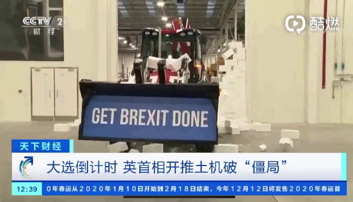 英国议会下院选举已进入倒计时,当地时间10日,各政党继续展开竞选活动,争取更多选民的支持。英国首相鲍里斯·约翰逊,更是选择了一个独特的亮相方式:当天,他驾驶着一辆推土机,将一堵写有“僵局”的泡沫塑料墙一举撞毁,而推土机上则写有“完成脱欧”的字样。