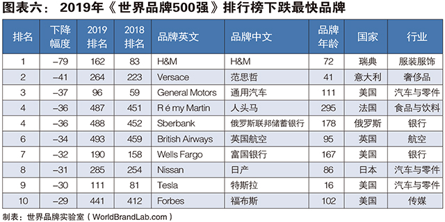 作为曾经快时尚行业的领先品牌,H&M由于未能及时适应消费者需求的变化,销售额经历连续下滑,成为今年跌幅最大的品牌输家。汽车行业也遇到前所未有的困境,通用汽车、日产和特斯拉分别位列下跌幅度最大的第3名、第8名和第9名。