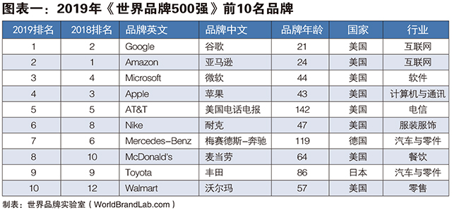 得益于云计算和无人驾驶等领域的业务增长,去年的亚军谷歌一举击败亚马逊荣登榜首,亚马逊退居第二,2019财年净利润大增的微软名列第三。2019年《世界品牌500强》排行榜入选国家共计29个,美国占据500强中的208席,稳居品牌大国第一。