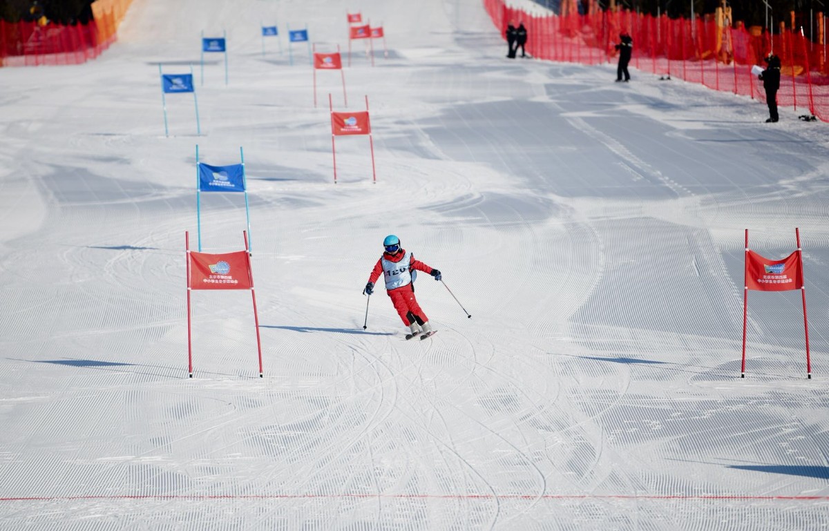12月13日,北京昌平军都山滑雪场一片热烈的竞技场面,300多名中小学生身着专业的滑雪装备,在高山雪道和越野雪道上展开竞速角逐,一展少年飒爽风采。