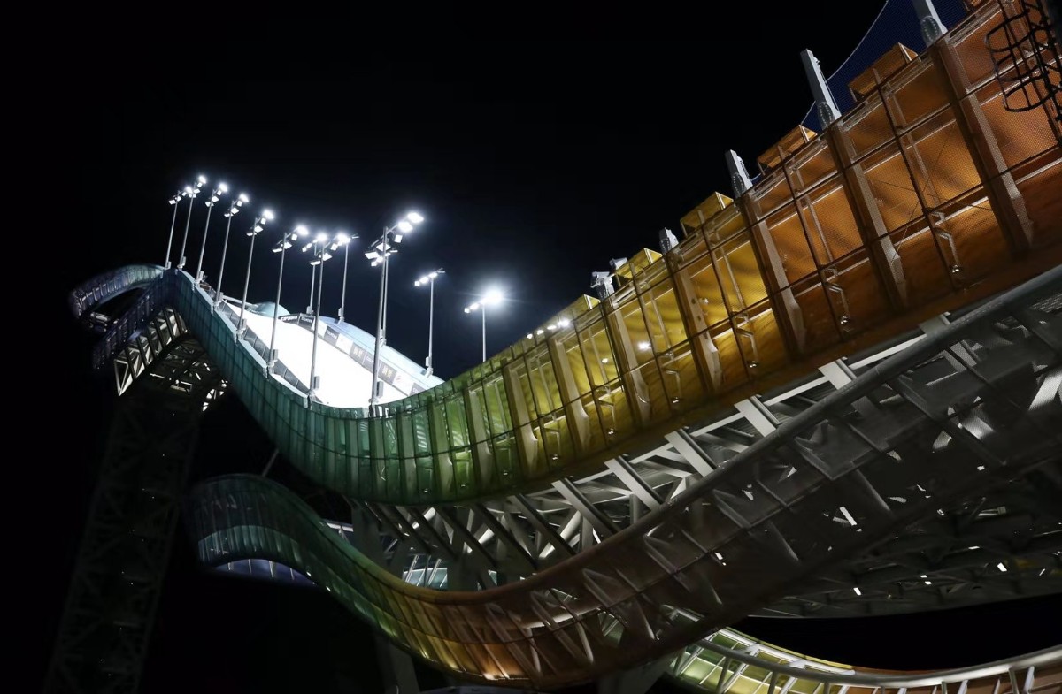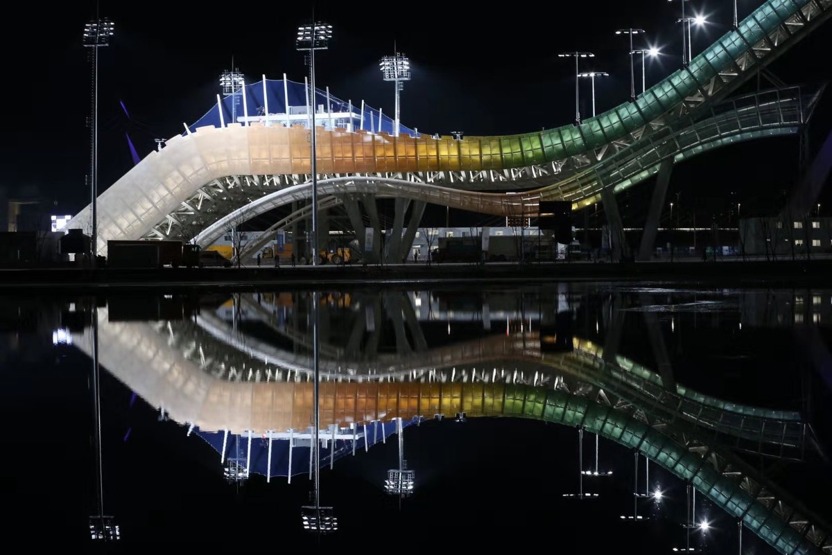 沸雪比赛放到首钢园滑雪大跳台,具有非凡的意义。北京市体育局副局长陈杰说:“本届沸雪赛事首次在首钢园大跳台举办,这是第一个亮相的北京冬奥会赛场,也是国内首次在同一个场地、同一比赛日举办的单、双板大跳台赛事。我们把这个赛事安排在首钢园大跳台举办,首先是场地建设标准之高,设施之先进,是这一赛事的最佳选择。另外一个目的,也是对这一座冬奥会新建场馆的首次全方位测试。在世界杯举办期间,运动员、观赛观众不仅可以观看到高级别的大跳台赛事,还可以欣赏到首钢光影秀表演,首钢园大跳台未来将服务大众冰雪和竞技冰雪运动,也将成为带动京西夜间经济的标志性文体设施。”