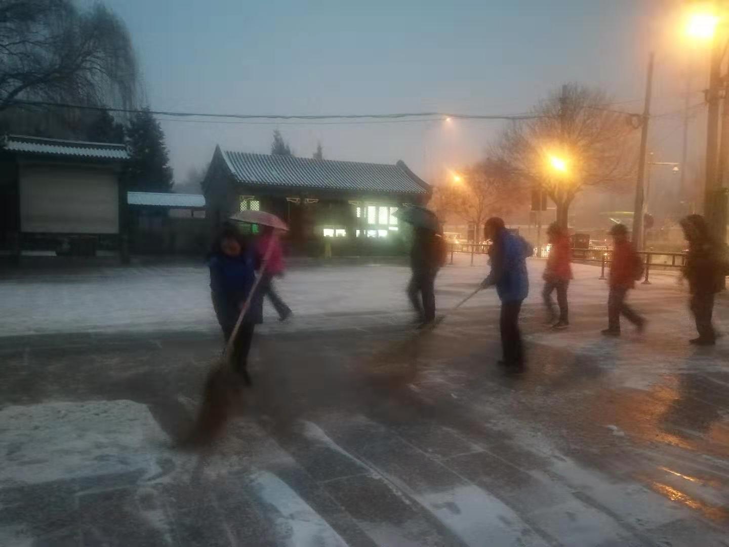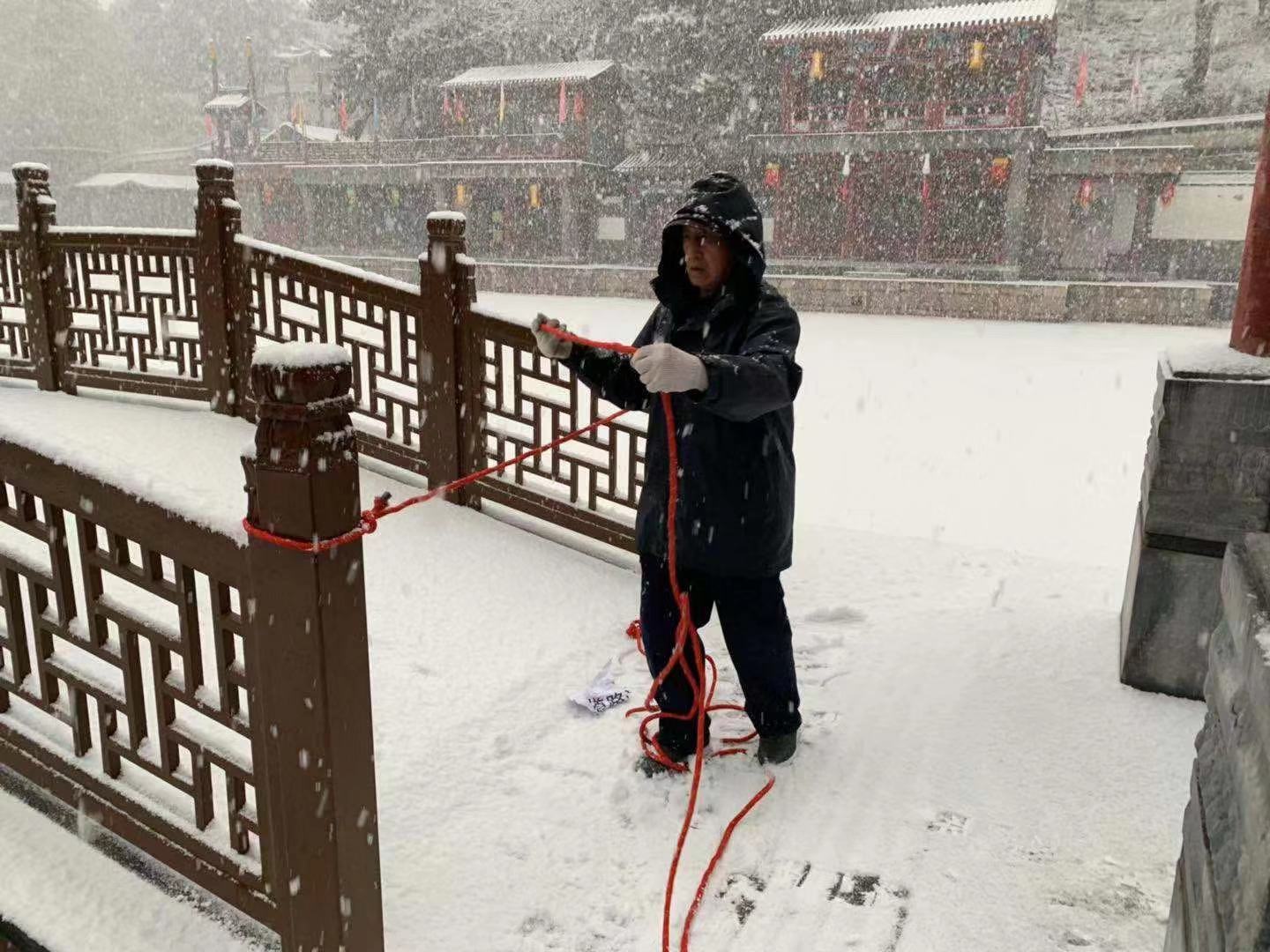 为了迎接京城第二场降雪,颐和园提前启动应急预案,增加扫雪除冰设备、人员,采取了多种举措,确保了雪天的安全稳定,也为这个寒冷的冬日带来一丝暖意。