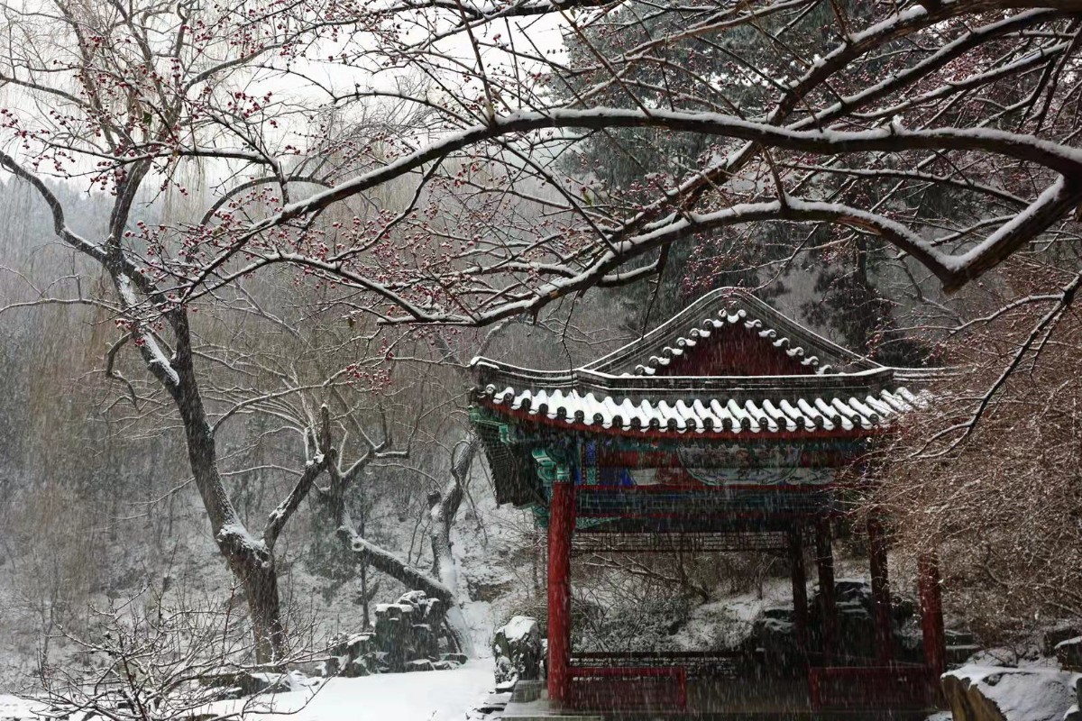 今晨(12月16日),一场大雪如期而至,相比北京市区的降雪量,香山地区降雪相对较大。今晨8时,香山公园内的积雪已经达到4厘米,厚厚的一层积雪使整个山林穿上白衣,银装素裹,一派北国银白的世界。为了游客安全,台阶较多的景区临时关闭。