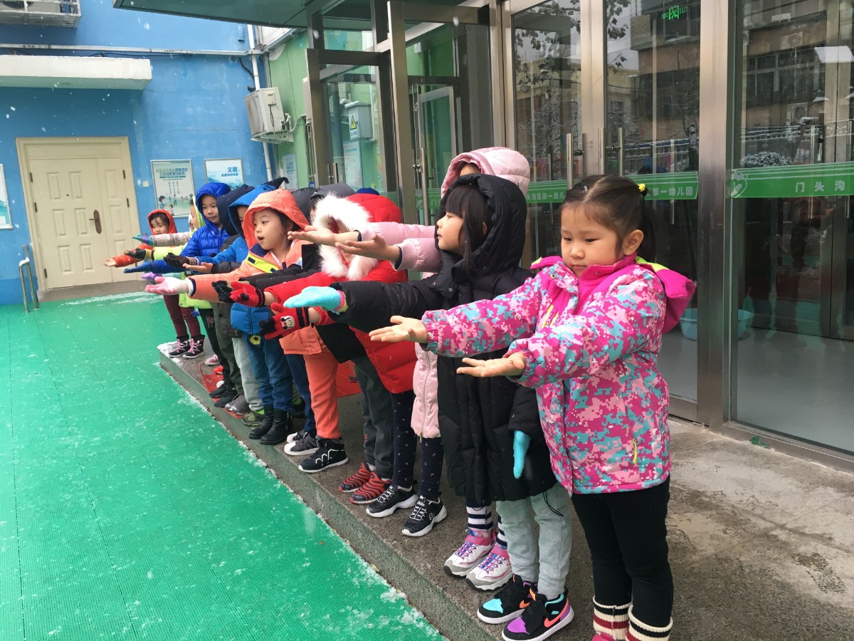 密云区幼儿园的孩子们拍着手唱着儿歌到户外观察雪。老师说,雪上绘画、堆雪人儿,这些游戏让孩子们发现雪花的秘密,更愿意亲近自然。顺义区高丽营学校的孩子们,用小黄帽和自己的围巾给雪人打扮起来。