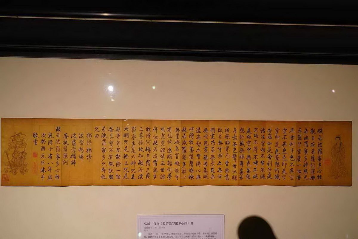 清宫戏中两位最佳男主角,当属“康熙”和“乾隆”。两位皇帝比字,谁写得更好,观众当评委。为了公平,国博特意选了同一个题目,让两位皇帝“挥墨”——玄烨与弘历分别用楷书和行书抄录的《般若波罗蜜多心经》册。国博说,因康熙喜爱董其昌,书家皆以董字为尚;而乾隆皇帝对赵孟頫的欣赏,又使“崇董”变为“尚赵”。