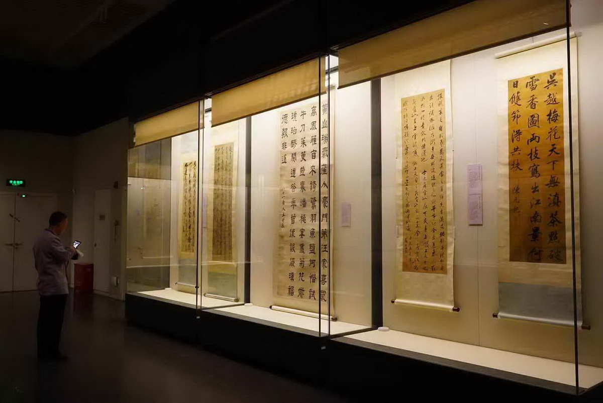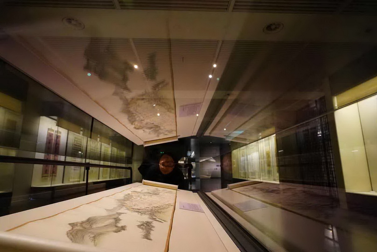 展厅中每一件书画背后都藏着故事,值得观众细细品读。其中,宋人所绘《辋川图卷》是以唐代王维《辋川图》或其他宋人所摹王维《辋川图》为蓝本摹绘而成,以水墨笔法将辋川二十景绘于一卷。全图山谷葱郁,云水飞动,山水树石皆笔力雄壮。文天祥、 赵孟頫、文徵明、董其昌、吴昌硕等历代名家佳作均在展出之列。