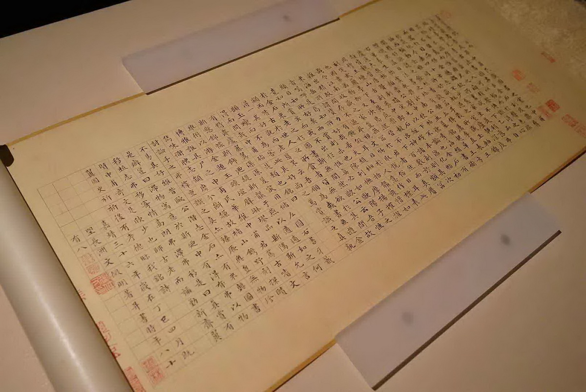 近10米长宋人《辋川图卷》及任仁发《饮饲图卷》等宋元真迹首次开卷展出,文天祥存世3件墨宝之一的《草书谢昌元座右辞卷》亮真容,赐死了岳飞的宋高宗赵构《草书七言绝句团扇面》露脸儿……17日,52幅中国古代书画代表亮相国家博物馆“中国古代书画展”,以时间为线,较为全面地展示出宋元以来近千年中国古代书画的发展脉络。