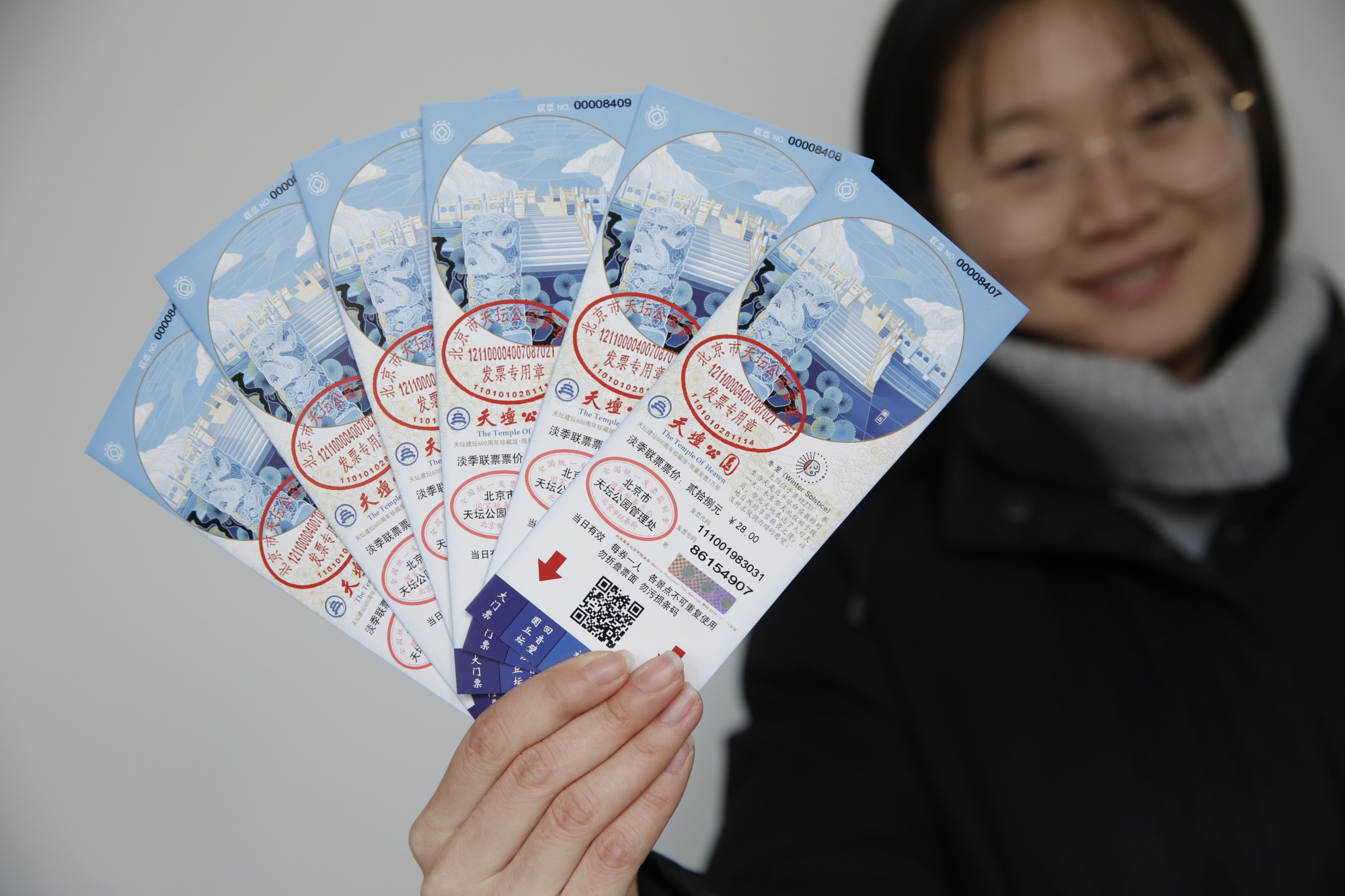 作为文创产品,天坛公园首次推出二十四节气纪念门票,以纪念北京天坛建坛六百年。
